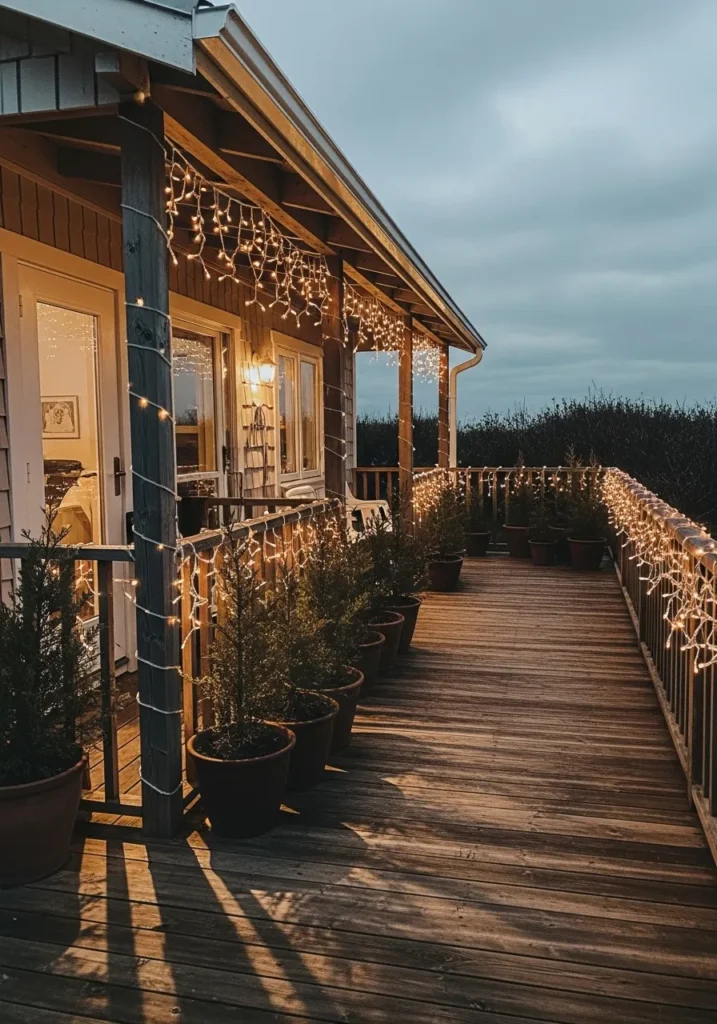 What I love about this look is how relaxed it feels. The natural wood deck paired with soft white lights gives off a calm, seaside-holiday vibe. It’s proof that Christmas magic doesn’t always need snow—it just needs sparkle.