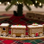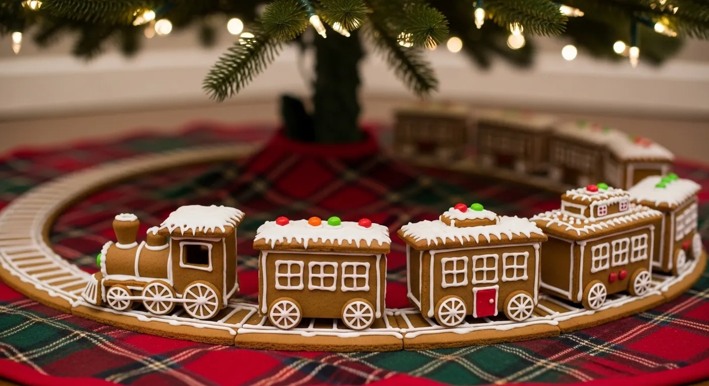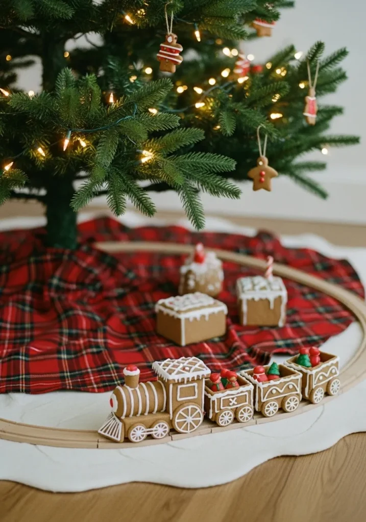 This adorable gingerbread train chugs its way around a Christmas tree skirted in red plaid. The details on each car are so cute, from tiny frosting windows to little candy decorations. It’s festive, whimsical, and full of heartwarming charm.