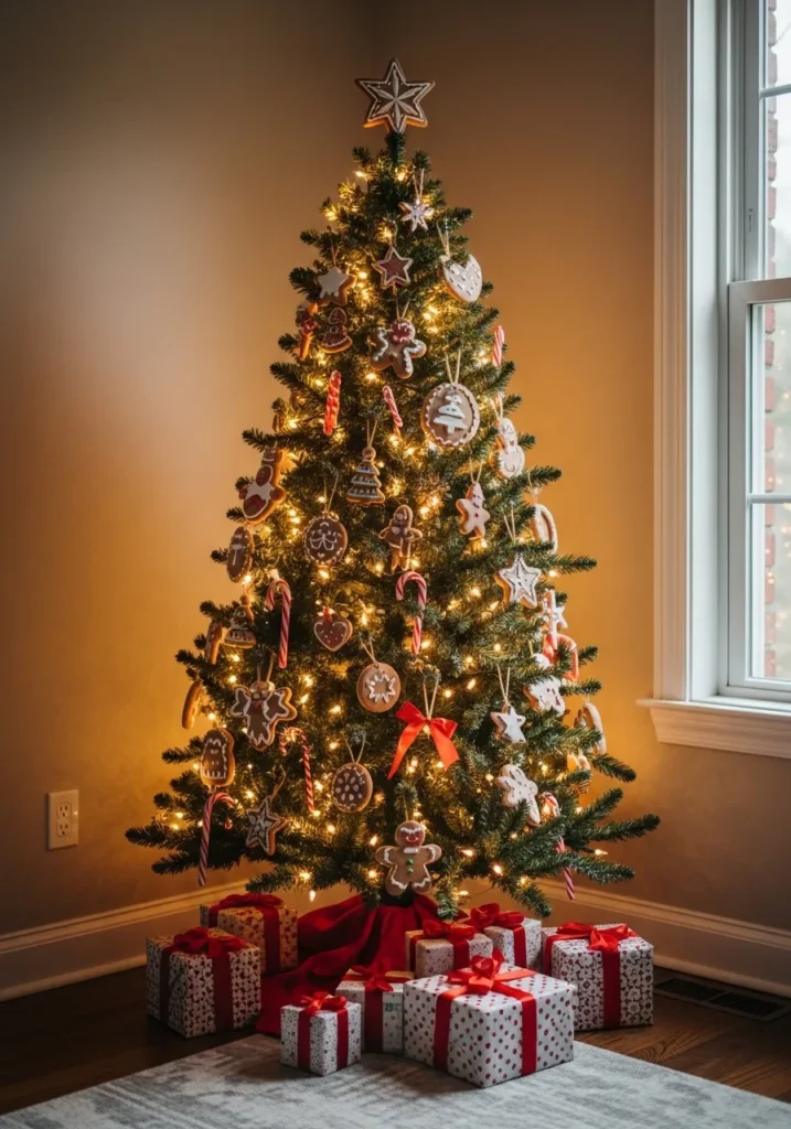 I’m obsessed with how timeless this feels. It’s festive without being over the top, and the scent of gingerbread mixed with pine needles would be absolute perfection. This tree proves you don’t need fancy ornaments to make a statement—just a sprinkle of sweetness and a dash of love.