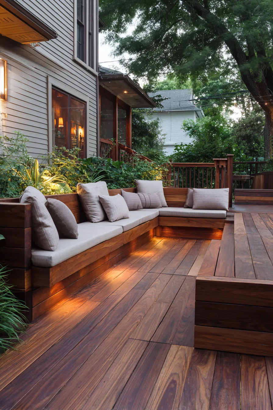 Built in deck seating has become one of my favorite outdoor design tricks because it makes even the smallest space feel thoughtful and intentional.