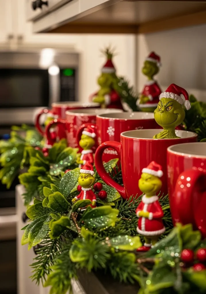 I adore this kind of small, easy-to-do décor. It’s such a clever way to sneak a bit of humor into the kitchen without going overboard. Plus, every time you reach for a cup of cocoa, that grumpy green face just makes you smile.