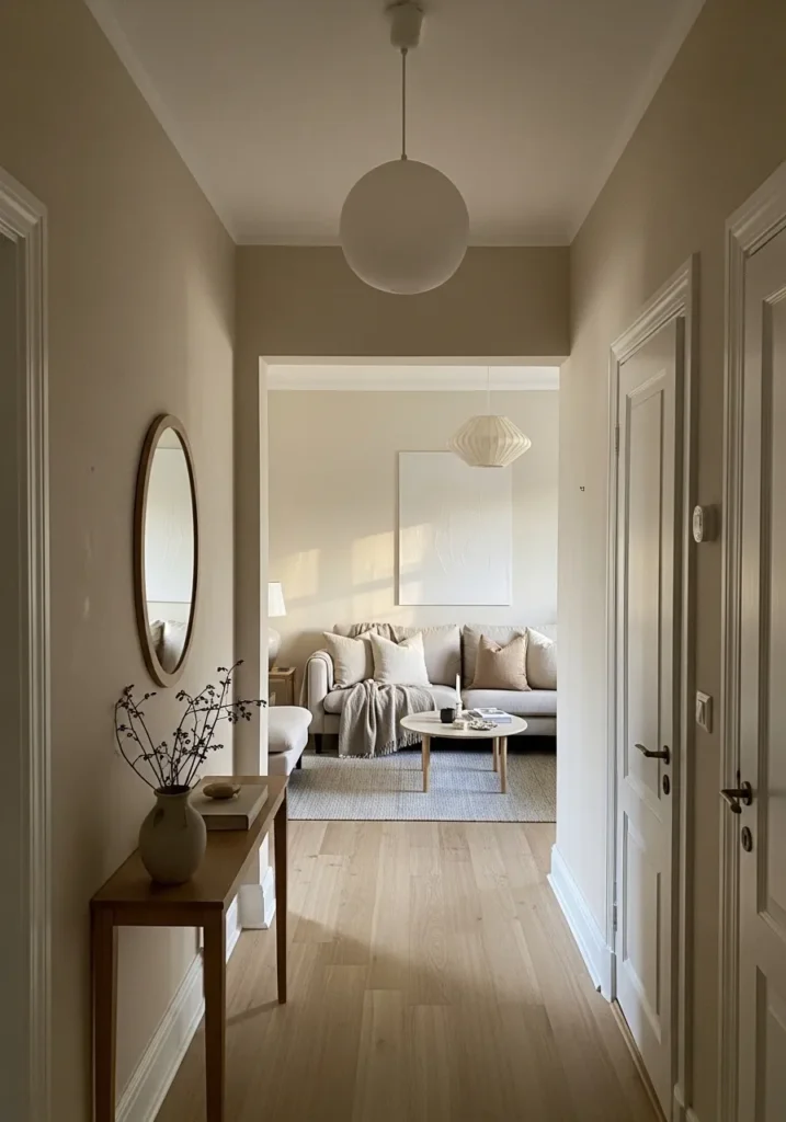 Warm Greige Walls In The Hallway