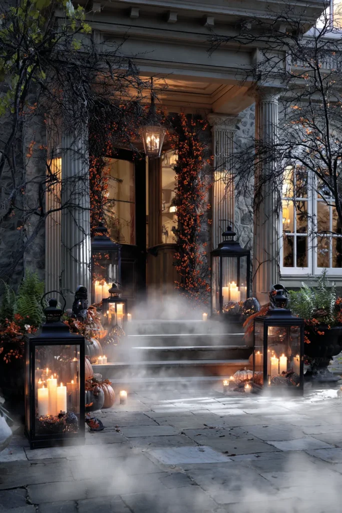 I love how this look balances elegance with just the right amount of spook. The glowing lanterns make it feel inviting, while the fog adds that magical Halloween mystery. It’s the kind of setup that makes guests stop in their tracks before even ringing the bell.