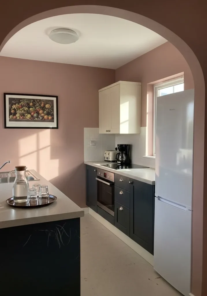 I find this color choice remarkably refreshing because it moves away from standard neutrals without feeling overwhelming. It creates such a nurturing atmosphere that makes the kitchen feel like the true heart of the home. The way the pink tones play off the natural wood creates a palette that is both timeless and trendy. It is a brilliant example of how a subtle pop of color can make a functional space feel like a cozy sanctuary.