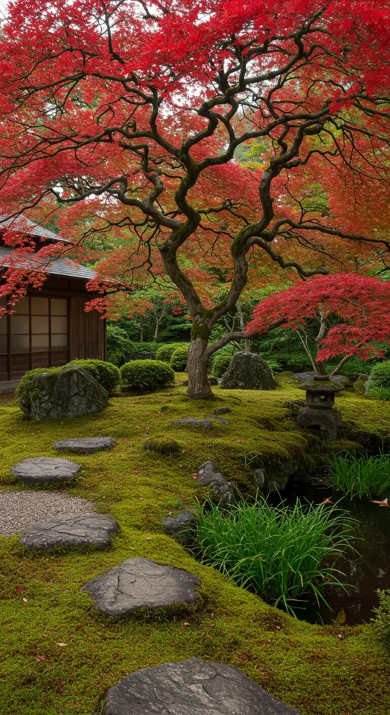 I can’t help but be captivated by the beauty and tranquility of this design. The red maple’s vibrant colors against the natural elements of moss, rocks, and water create such a peaceful atmosphere. The stepping stones, leading gently through the space, not only add visual interest but also invite relaxation. It’s the perfect example of how a tree, when paired with thoughtful landscaping, can transform a space into a serene and stunning retreat. If you love nature’s simplicity, this design is sure to inspire you!