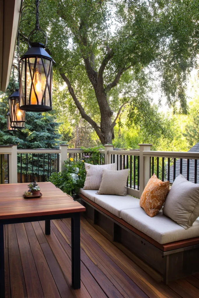 I’m such a fan of built in seating for small decks like this. It feels thoughtful and intentional, and it makes the space feel larger than it actually is. This is the kind of design that just works.