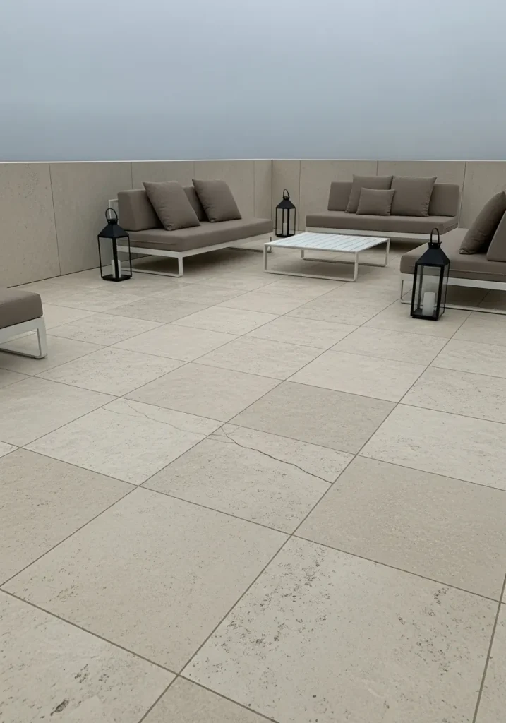 Minimal Luxe Terrace With Oversized Stone Tiles