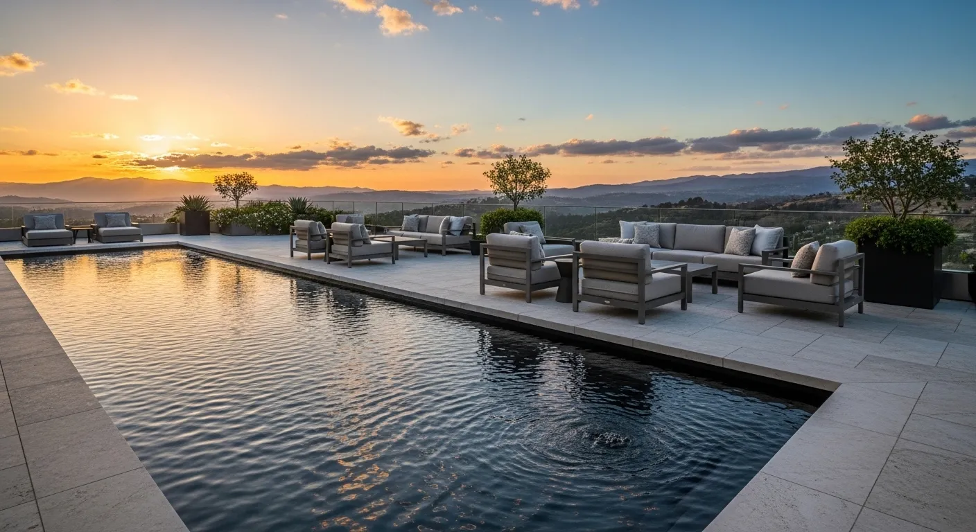 Sunset Reflecting Pool With Lounge Seating