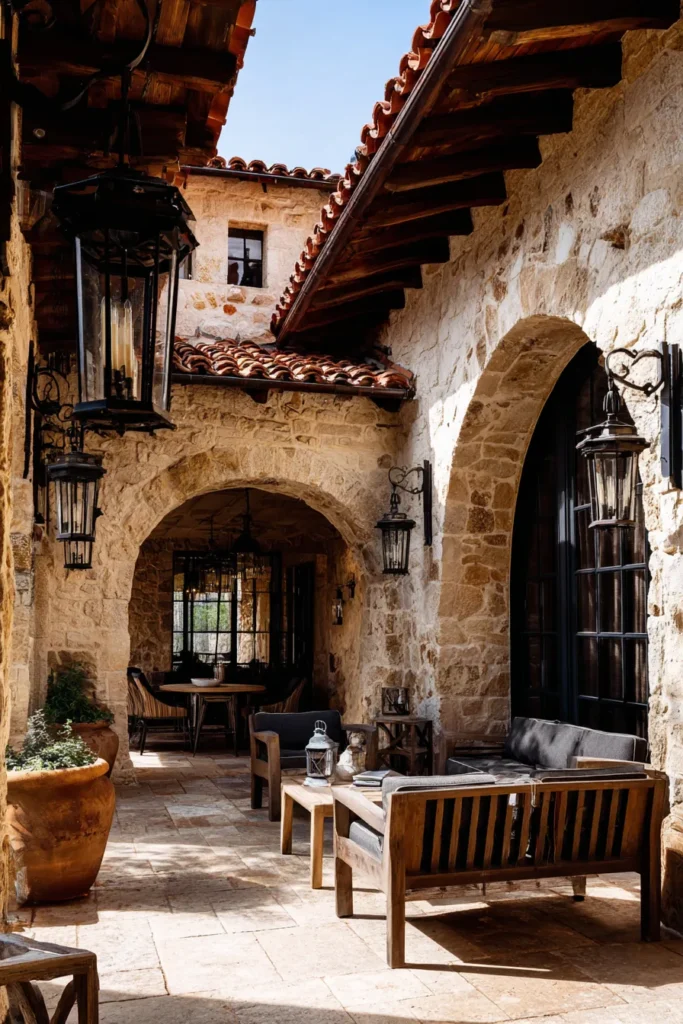 I am absolutely swooning over this design because it manages to be so luxurious yet completely cozy at the same time, perfect for cooler Mediterranean evenings. It completely transforms the typical patio into a true three-season entertaining space that feels like a five-star lodge. The neutral, earthy color palette is so calming, and the sheer volume of comfy pillows is an invitation I simply cannot resist!