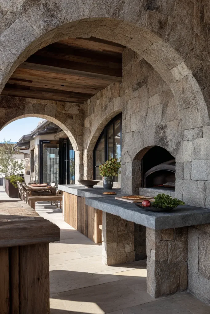 I am completely blown away by the sheer beauty and craftsmanship of this outdoor kitchen—it’s both incredibly functional and a total work of art. The combination of the cool, heavy stone and the warm, rustic wood is so visually appealing and authentic. I can totally imagine hosting the most incredible dinner parties here, cooking a fresh pizza right in that oven and feeling completely luxurious—it’s the ultimate dream for an outdoor chef!