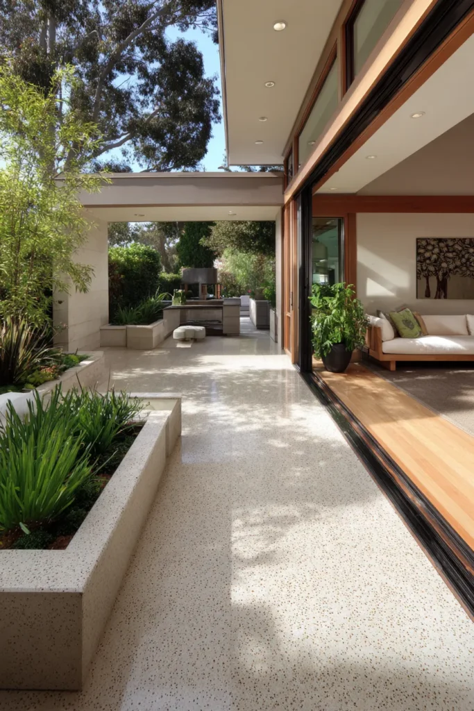 Seamless Indoor-Outdoor Flow with Polished Terrazzo Flooring