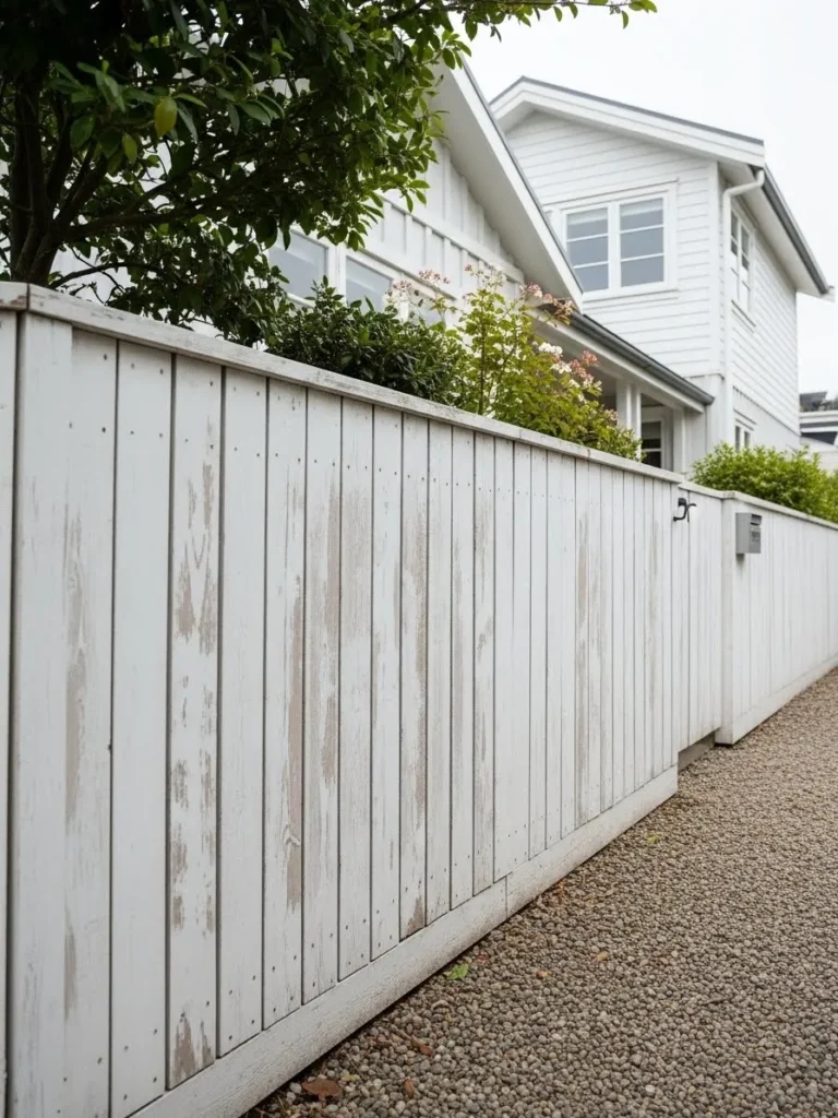 I am absolutely head over heels for this look because it feels like a total breath of fresh air for a front yard. Some people love a perfect paint job but I think that slightly distressed finish is what makes this so charming and approachable. It reminds me of a cozy cottage by the sea where everything feels relaxed and nothing is too precious. This fence is proof that you can have privacy without making your home feel like a fortress. It is just so inviting and gives off the best friendly neighbor vibes.