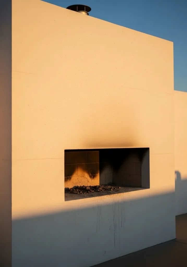 Minimalist Stucco Privacy Wall With Built In Fireplace