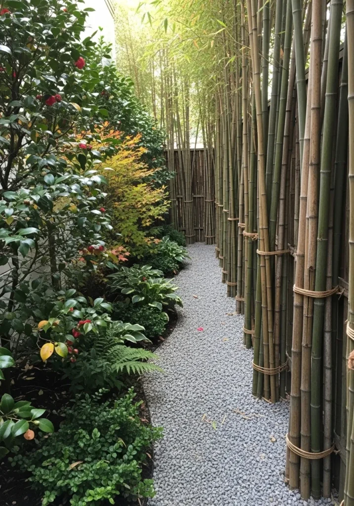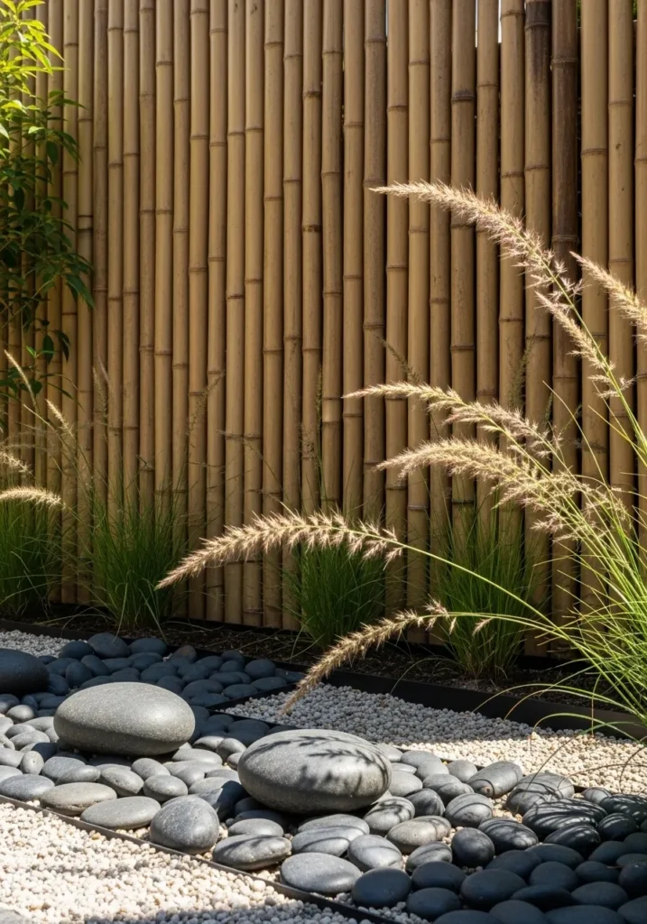 Bamboo Wall Paired With Zen Gravel and Stones