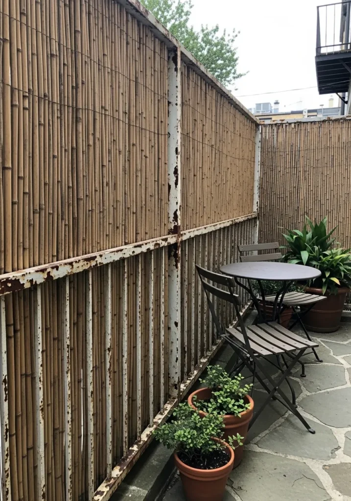 I am always drawn to designs like this because they feel effortlessly styled. The bamboo gives the patio structure, while the woven furniture keeps it light and inviting. It feels natural, grounded, and easy to live with. For me, this is the perfect example of how a simple privacy screen can transform an ordinary corner into a warm and welcoming outdoor retreat.