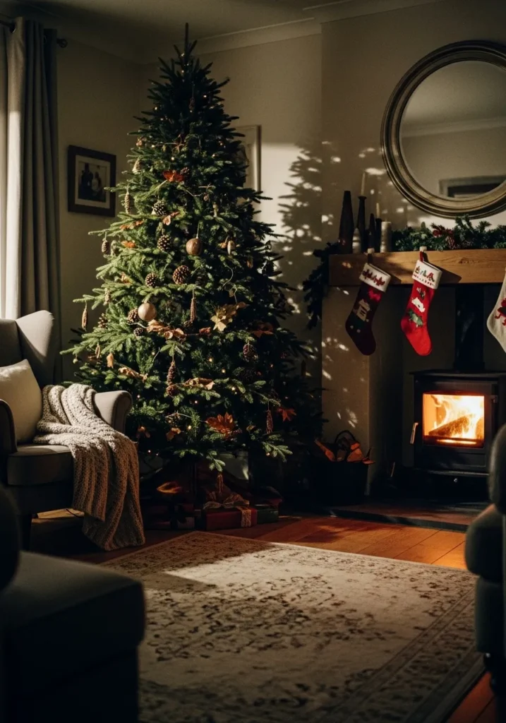 I adore how warm and inviting this feels. It’s the kind of Christmas setup that makes you want to linger by the fire with a cup of cocoa and never leave.