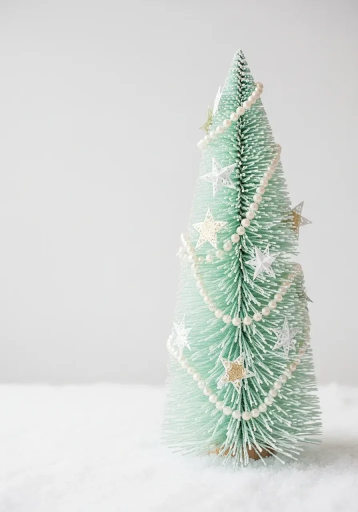 This petite mint tree might be small, but it shines with charm. The pearl garland and star details make it feel dainty and sophisticated, while the mint hue keeps things playful and light. It’s the perfect accent for a desk, shelf, or side table.