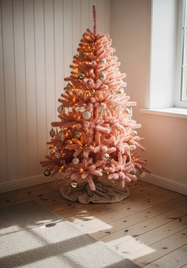 I absolutely love how calm and balanced this setup feels. The gentle mix of textures, the neutral backdrop, and the pops of pink give it that effortless Scandinavian charm that feels both fresh and timeless. It’s one of those trees that makes you want to curl up with cocoa and never leave the couch.