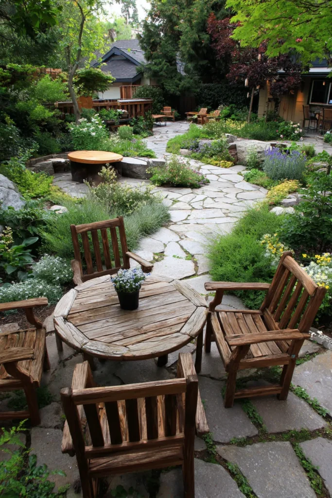 Enchanted Garden Patio with Natural Stone Pathways
