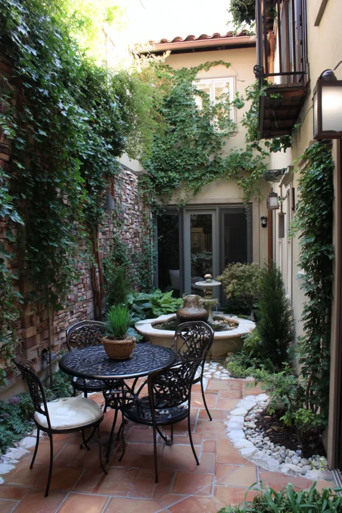 Oh my goodness, I just adore everything about this cozy little hideaway! It feels like stepping into a storybook garden, so full of character and serenity. The way the ivy drapes over the walls makes it feel so established and secluded, and the sound of the trickling fountain must be absolutely heavenly. This is definitely the kind of magical space where I’d love to enjoy my morning coffee or unwind with a good book.