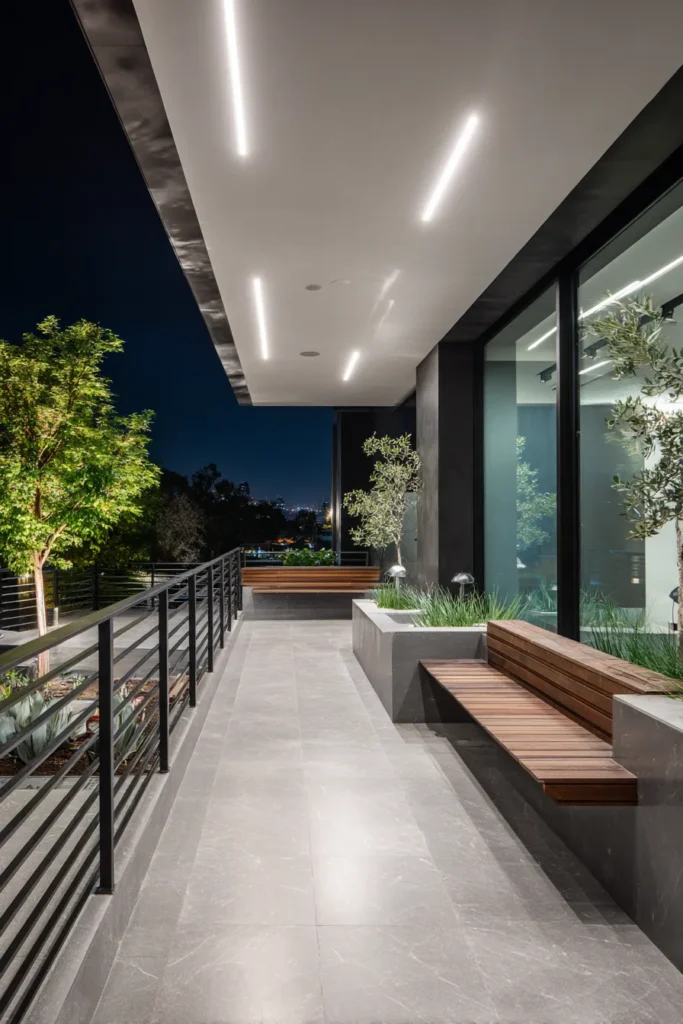 Modern Balcony with Clean Lines and Lighting