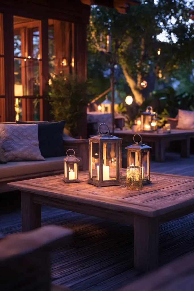 There is just something so timeless and utterly romantic about the sheer number of flickering lights in this design that I just adore. It feels instantly moody and secluded, like the world melts away as soon as you settle into those cushions. If you want a space that feels personal, magical, and perfectly set up for those long, deep conversations, relying on the beautiful light from those abundant lanterns is an absolute dream.