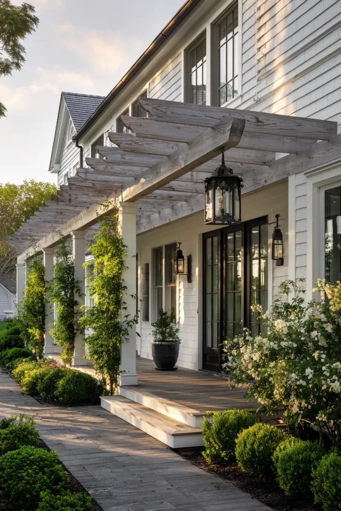 Elegant Farmhouse Style with a Weathered Wood Pergola