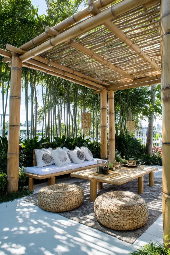 Natural Bamboo Pergola for a Zen-Inspired Lounge