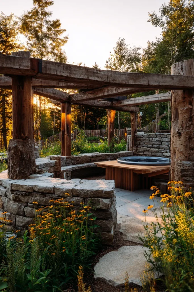 I am completely drawn to the intimate and cocoon-like feeling of this style because it makes you feel instantly removed from the outside world. The use of all that beautiful, heavy wood gives the structure such a grounded, authentic feeling, and I think that’s so important when you want a true escape. It honestly looks like the perfect private spot for year-round relaxation, where you can feel totally hidden away and peaceful.