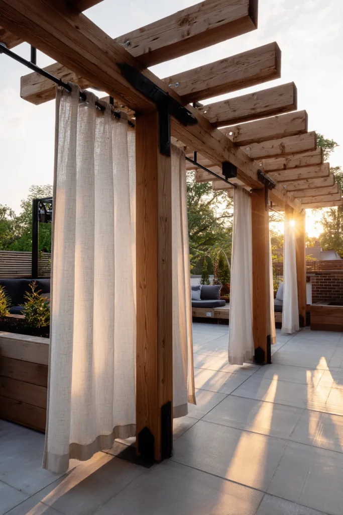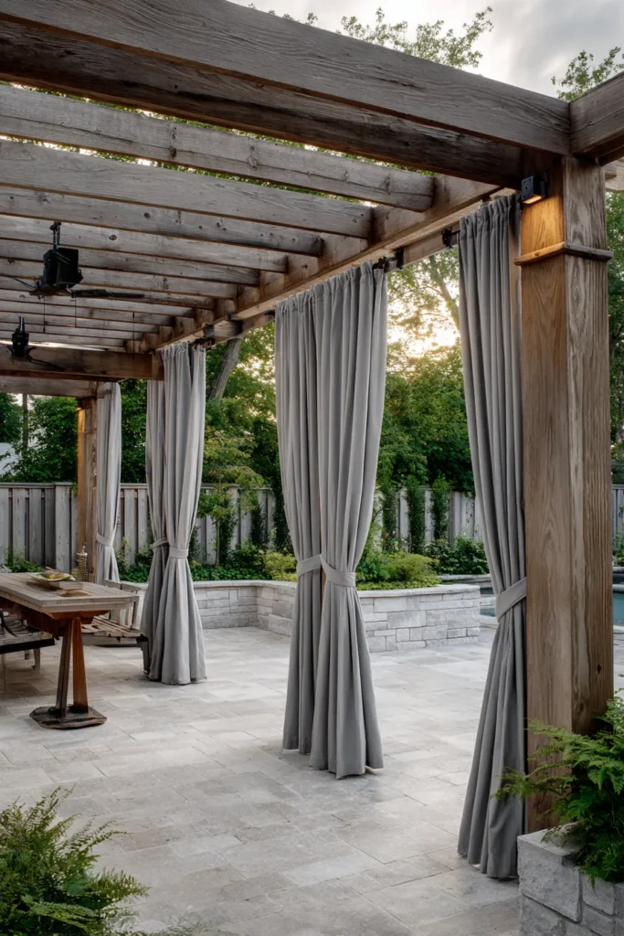 Curtains on a pergola are my favorite magic trick for instant privacy and soft romance.