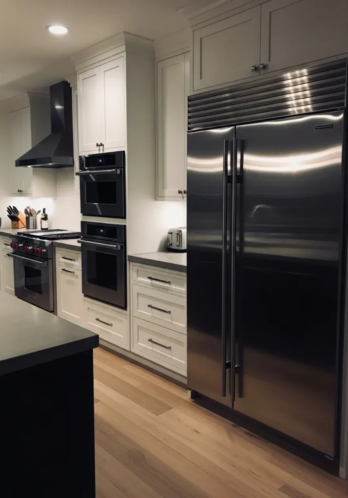 There’s a slight warmth in it that keeps it from feeling too harsh, which helps when you pair it with lighter counters and brushed metal hardware. It works best in kitchens with good lighting so it doesn’t feel too heavy. If the space is darker, it can start to read almost solid black with very little variation.