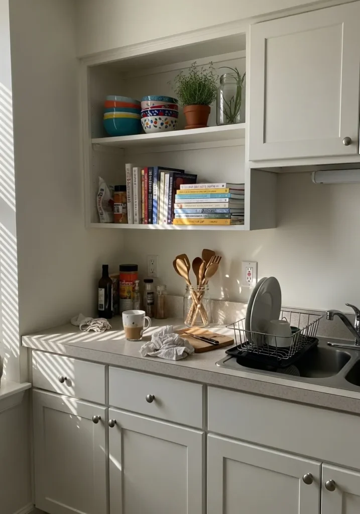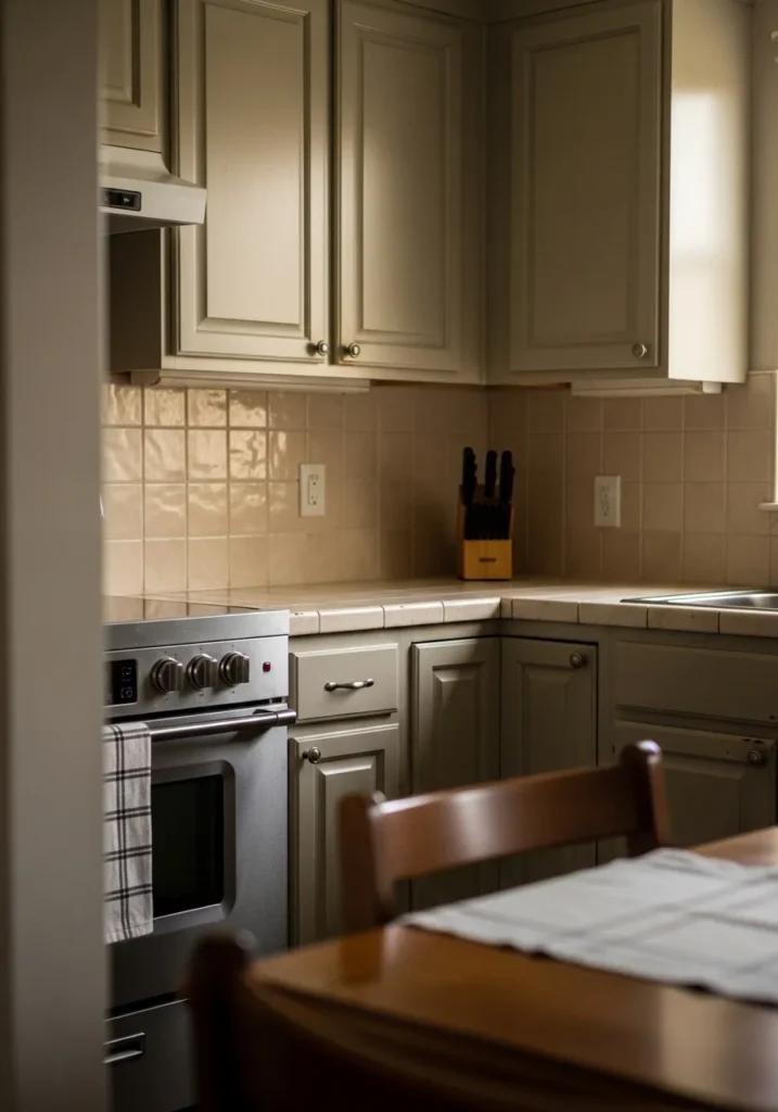 There’s a slight creamy undertone that shows more when the light hits it directly, which keeps it from feeling too flat. It works well in small kitchens or corners like this where you want things to feel lighter. I’d keep surrounding colors on the warm side so it stays consistent and doesn’t start to look a bit dull.