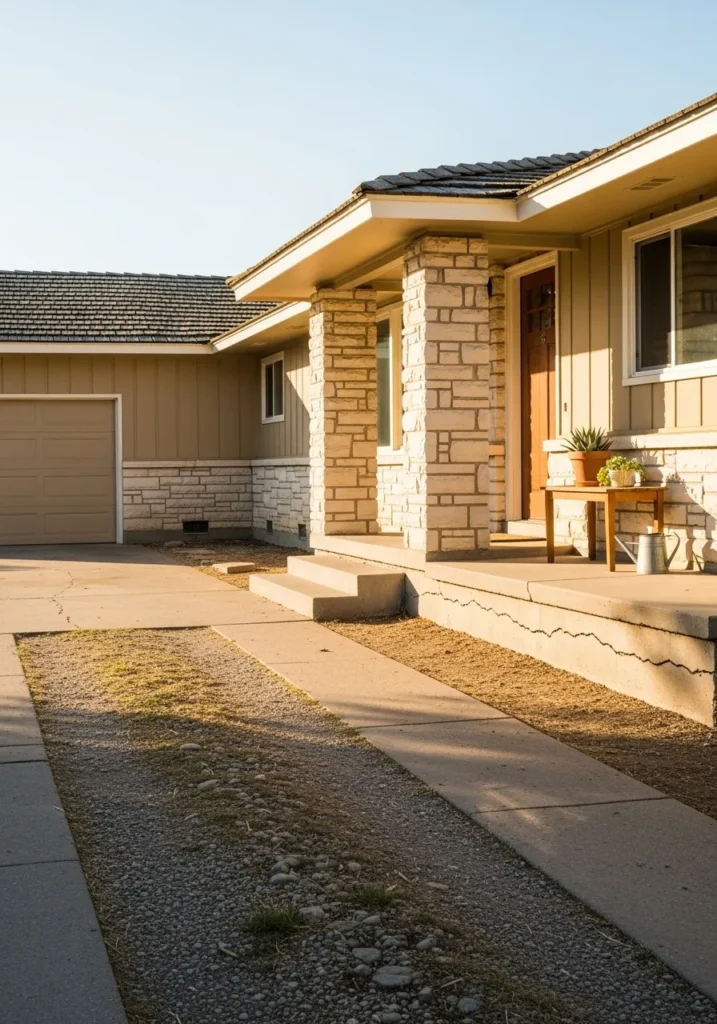 Watching the sun dance over those limestone pillars makes the desert look incredibly tempting. I’m quite a fan of how the designer used the vertical siding to give a classic ranch house a bit of a modern, lifted feeling. It is so smart to pair a reliable khaki tone with that warm wood because it feels incredibly expensive and curated without being fussy. This house just feels like the perfect place to kick off your shoes and enjoy a quiet sunset on the porch with a good book.