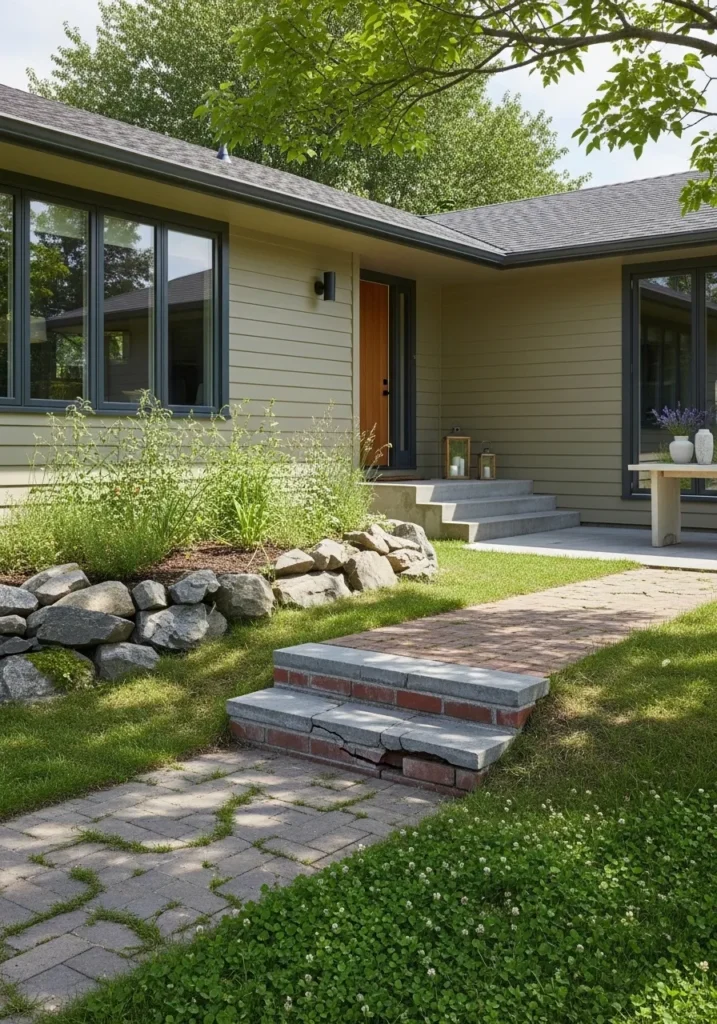 The way the afternoon sun hits that brickwork is simply gorgeous and makes the whole space feel so inviting. It is quite clever to use a shade like this because it manages to look clean and modern while still feeling incredibly grounded and natural. I find the contrast between the structured house and that whimsical, winding stone path to be such a clever design choice. This little corner feels like a private escape where you could spend hours just puttering around the garden and enjoying the fresh air.