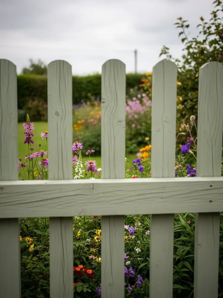 Soft Sage Picket Fence With Wildflower Charm