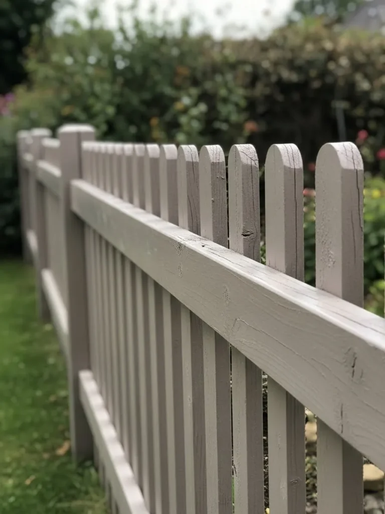 Soft Neutral Picket Fence Framing a Green Garden