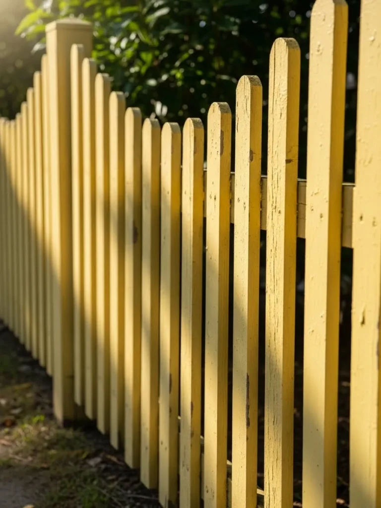 Soft Yellow Picket Fence Glowing in Golden Light