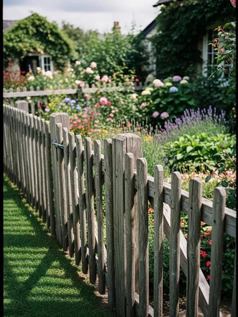 Weathered Wood Fence Framing a Lush Cottage Garden