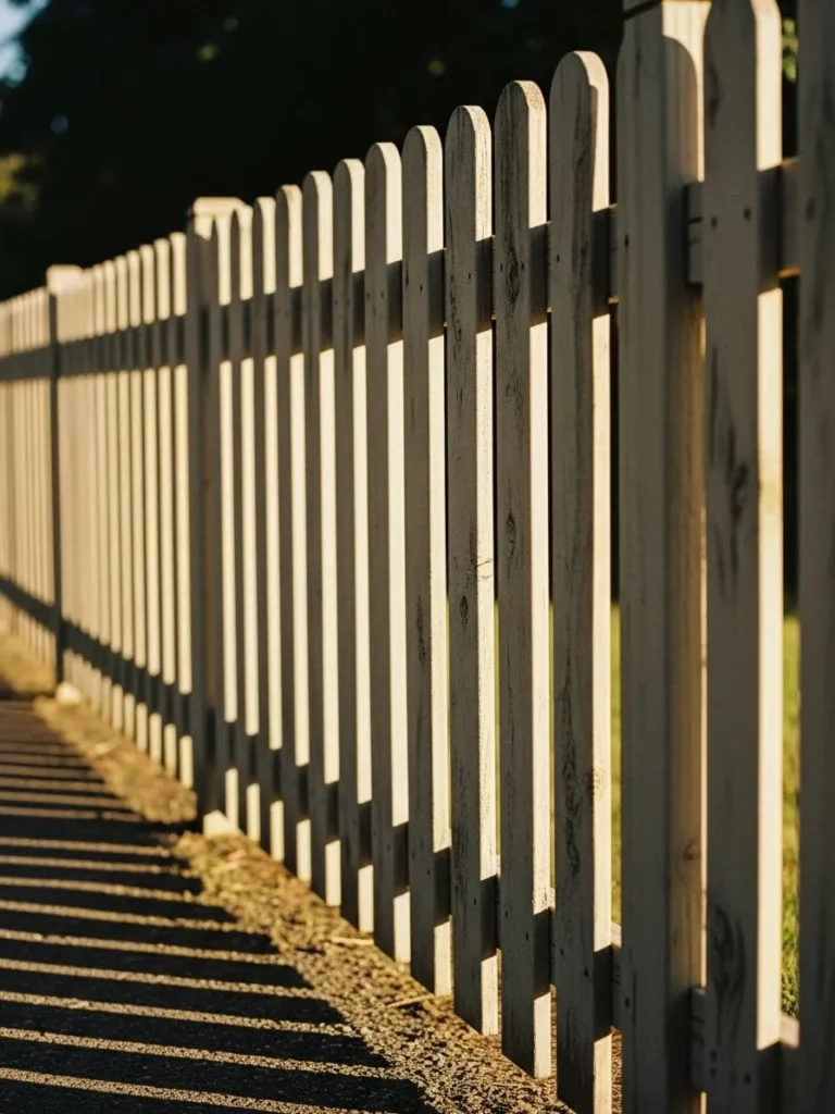 I really enjoy how light transforms a fence like this. The shadows add movement without needing any decoration. It feels peaceful and classic in the best way. This kind of fence always makes a walk feel more enjoyable.