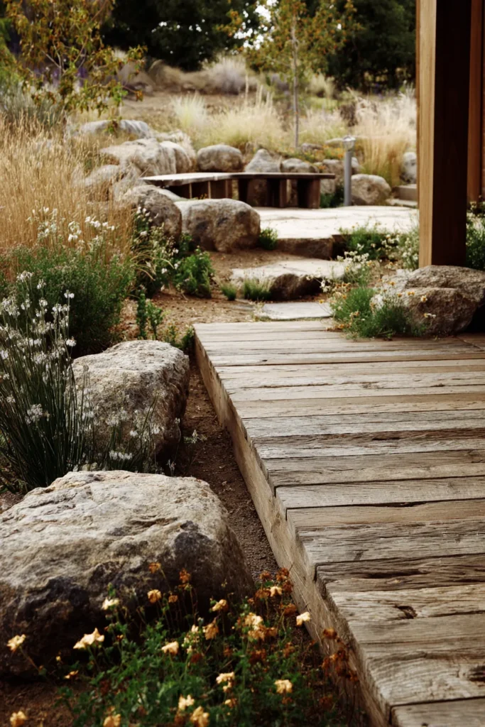 Rustic Garden Path Deck with Natural Stone