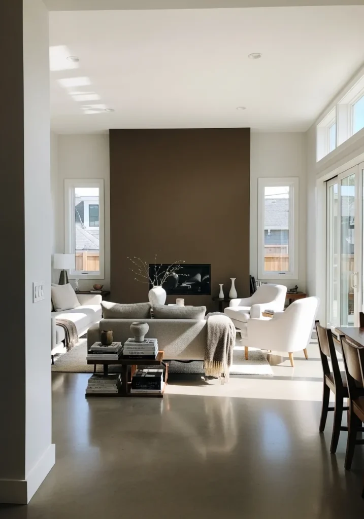 Rich Brown Accent Wall In A Bright Living Room