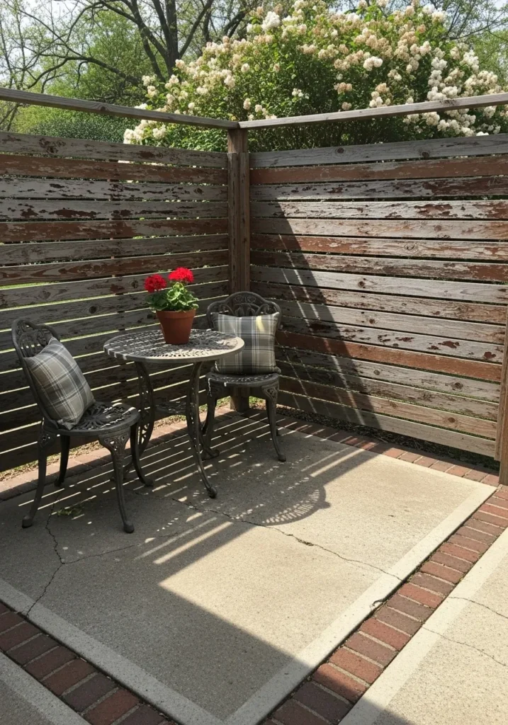 I love how this setup turns a basic corner into a private little retreat. It feels intimate without being cramped. The warm wood tones instantly soften the space and make it more inviting. This is exactly the kind of backyard nook that makes staying home feel special.