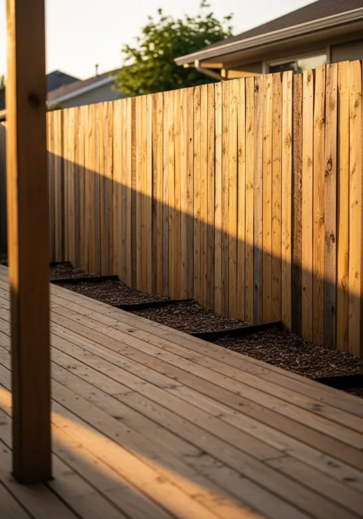 I love how simple this design is, yet it makes such a strong statement. The golden hour lighting really brings out the character in the wood. It feels dependable and cozy at the same time, which is exactly what I want in a backyard privacy solution.