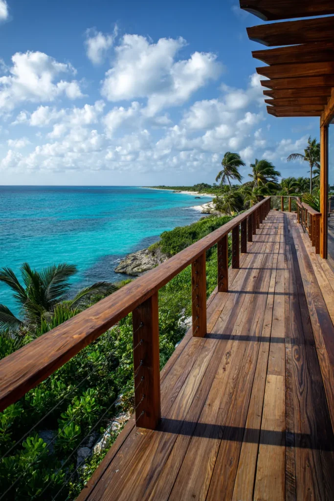 Tropical Ocean View Deck With Warm Wood Details