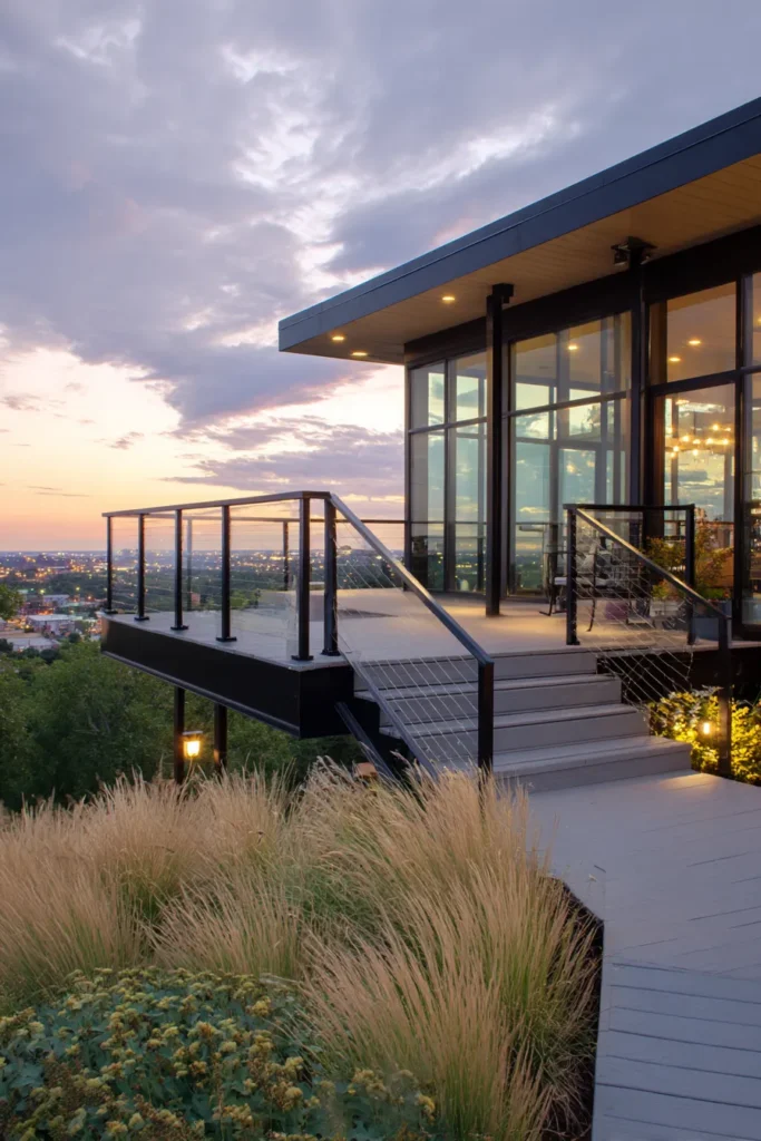 I honestly love how calm and confident this design feels. The clean lines and open railing let the view do all the talking, which always feels so effortless to me. This is the kind of deck that feels peaceful during the day and a little magical at night when the city starts to glow.