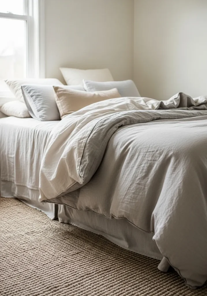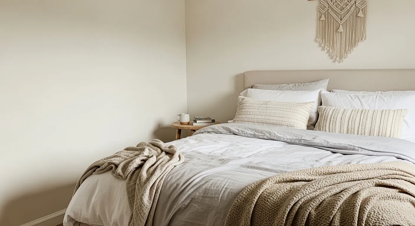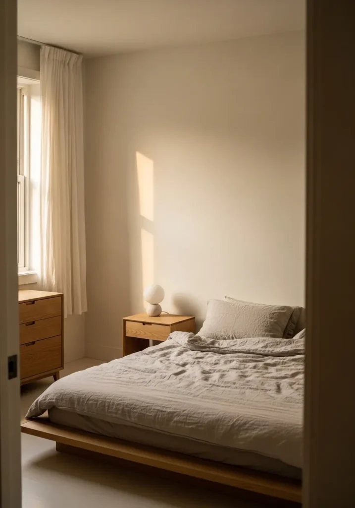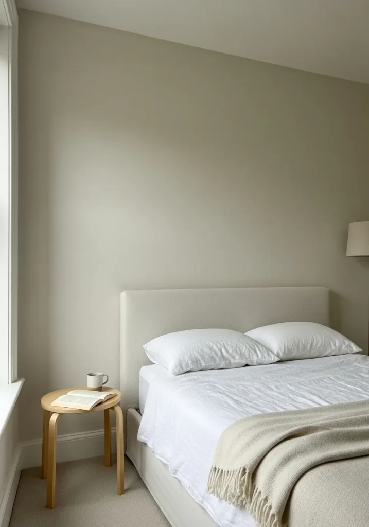 The undertone leans slightly warm, which helps it work well with wood tones and soft fabrics. It can shift a bit depending on the light, sometimes reading more beige in the afternoon. I tend to like this kind of color in bedrooms where you want something calm but not flat, and it pairs nicely with creams and light taupes without feeling too matched.