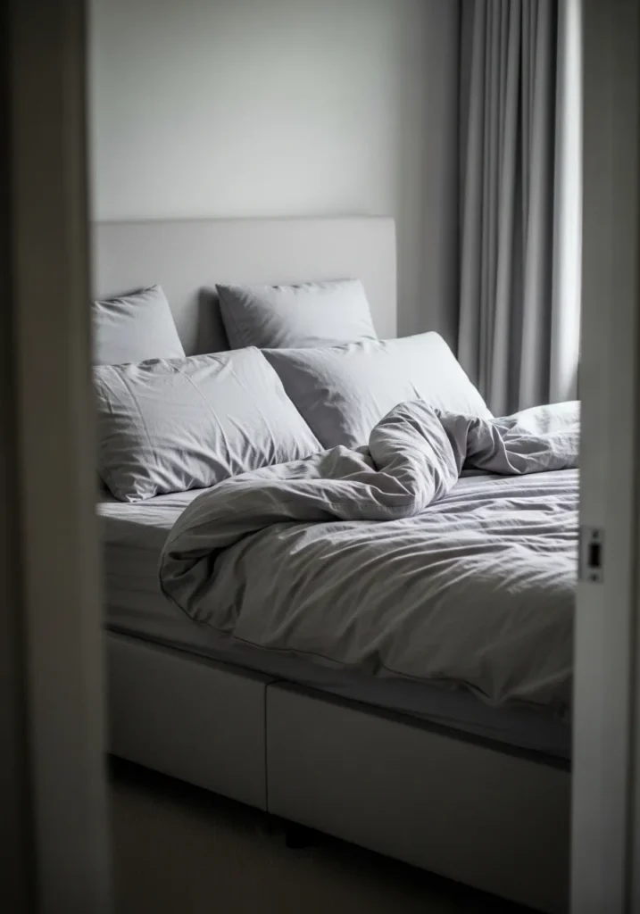 The undertone leans cool, so it can shift a bit depending on the light. Sometimes it reads more gray, sometimes a faint blue comes through. I like this kind of color in bedrooms where you want something light but not warm, especially if you keep the palette soft and a little muted.