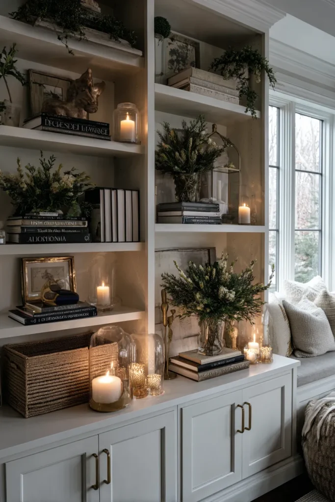 If you’re like me and adore that soft, elegant kind of Christmas magic, these ideas will make your shelves sparkle in all the right ways.