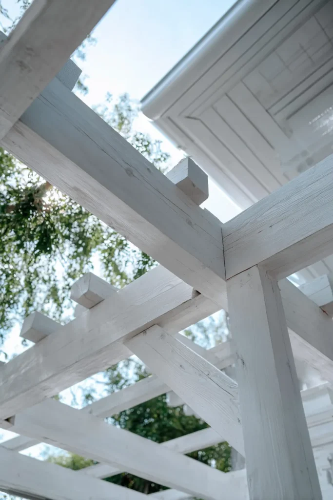 I absolutely adore this look because it’s just so romantic and completely magical, honestly, like something out of a favorite childhood story. The way the bright white pops against all that deep green is stunning, and the little mix of the painted wood with the natural wood roof structure is a brilliant, easy design detail. If you’re into creating a defined, whimsical entrance to your backyard or garden area, a simple arched pergola like this is such a charming and incredibly doable weekend project.