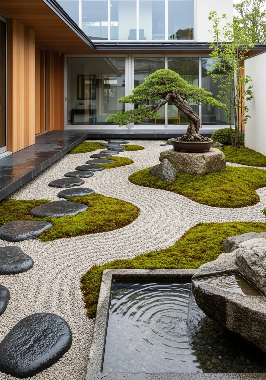 Serene Japanese Zen Garden with a Tranquil Water Feature